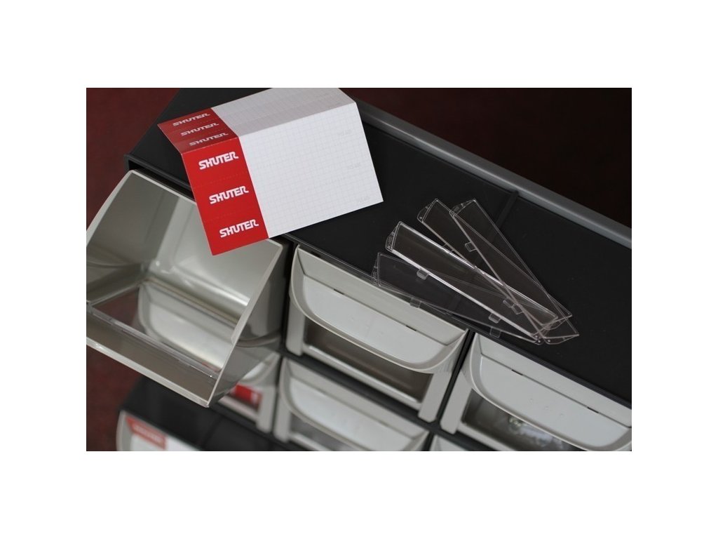 Každá zásuvka je opatřena popisovacím štítkem a transparentním čelem na přední části, které zaručují okamžitou přehlednost a orientaci v materiálu.