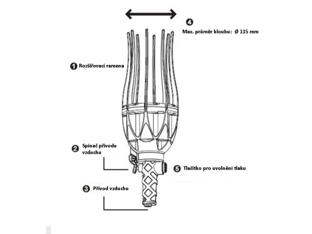 Jednoduché ovládání pomocí tlačítek. Jedním tlačítkem se vpouští vzduch do přípravku a ramena se roztahují a druhým se vypouští a ramena se skládají do základní polohy.