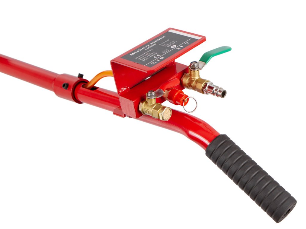 Součástí výbavy je ergonomická rukojeť o délce 71 cm, bezpečnostní ventil nastavený na 12 bar, sada upevňovacích šroubů a ovládací ventil s CE certifikací.