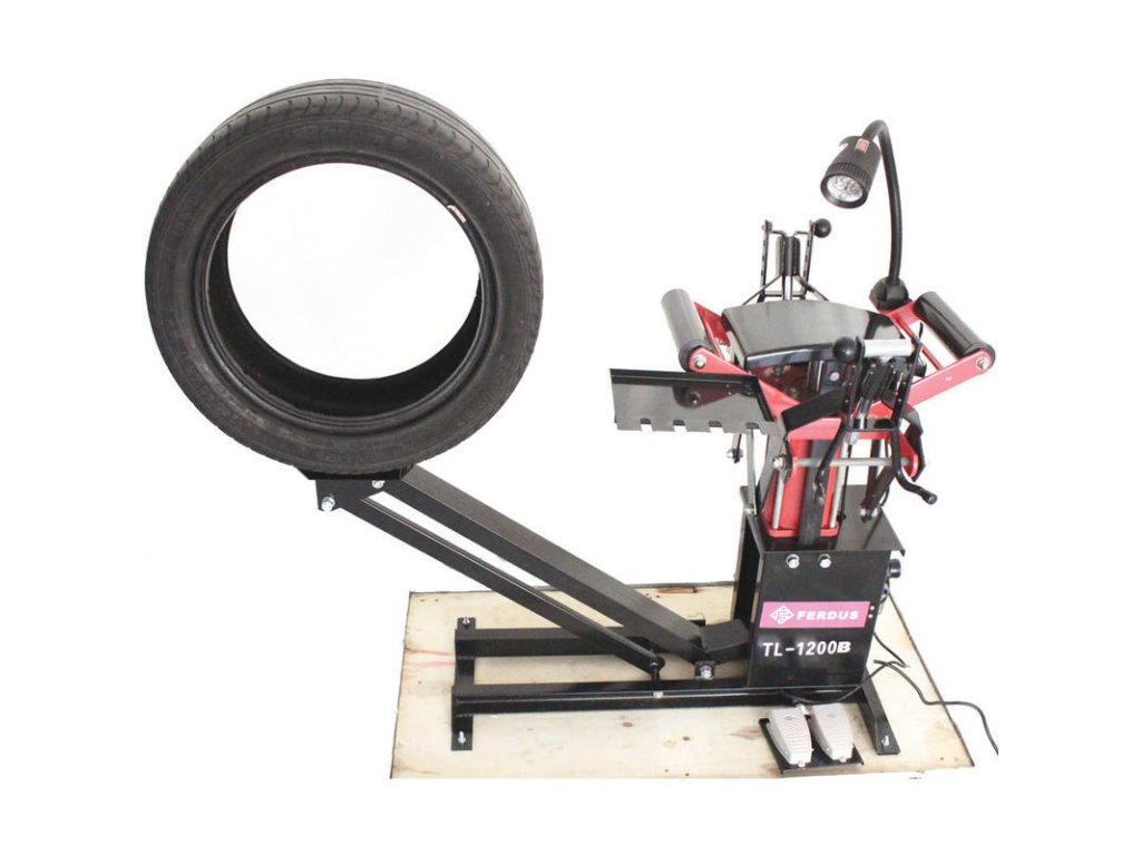Pneumatika se musí umístit mezi dva válečky. V místě, kde má být provedena oprava pneumatiky se zachytí nastavitelnými roztahovacími rameny o patky pláště.