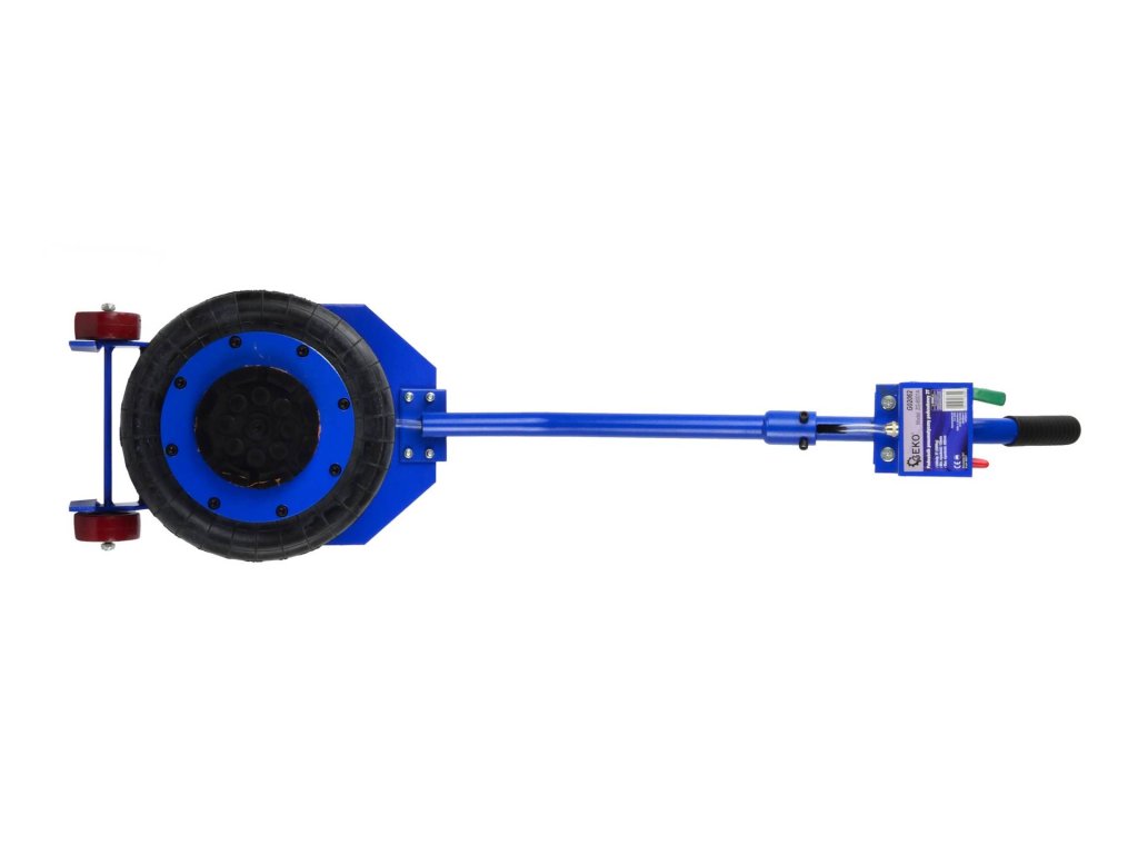 Zvedák má dvě pevná kolečka a rukojeť pro snadné přesouvání.