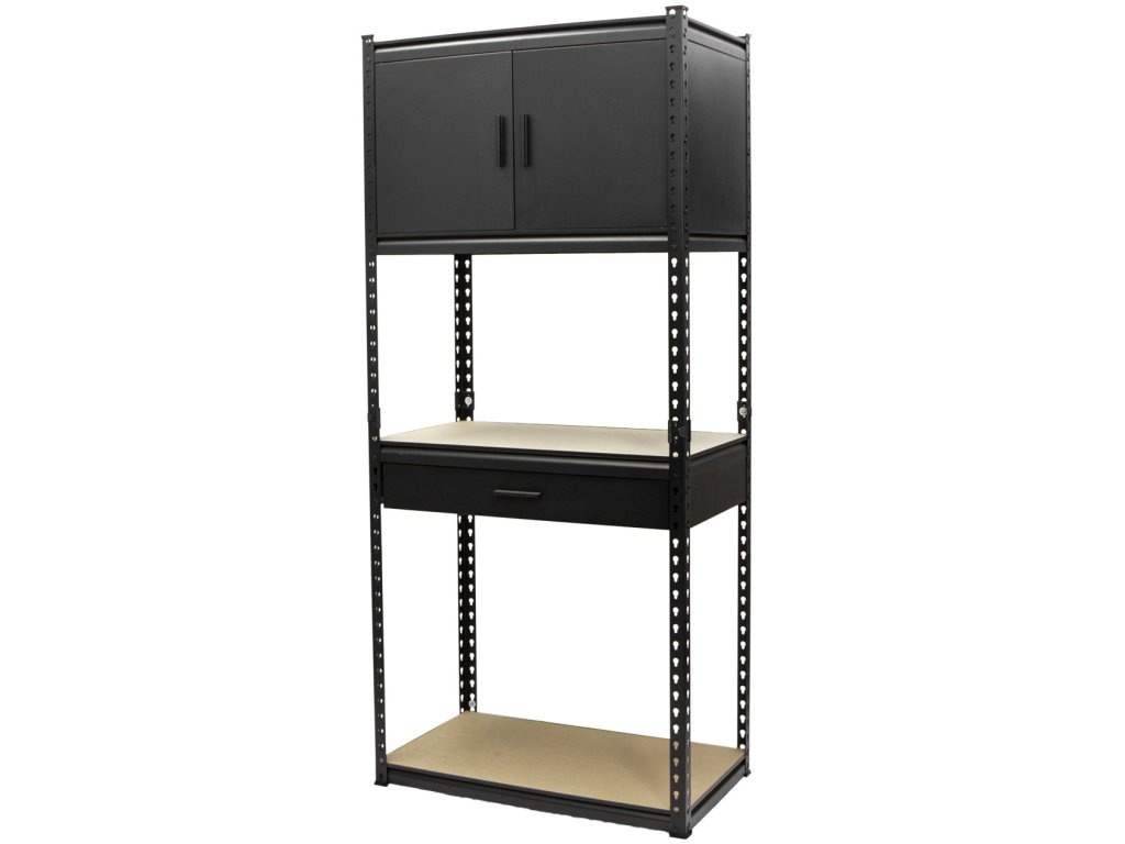 Policový regál MASTER + 1 zásuvka + skříňka, 815 x 465 x 1825 mm