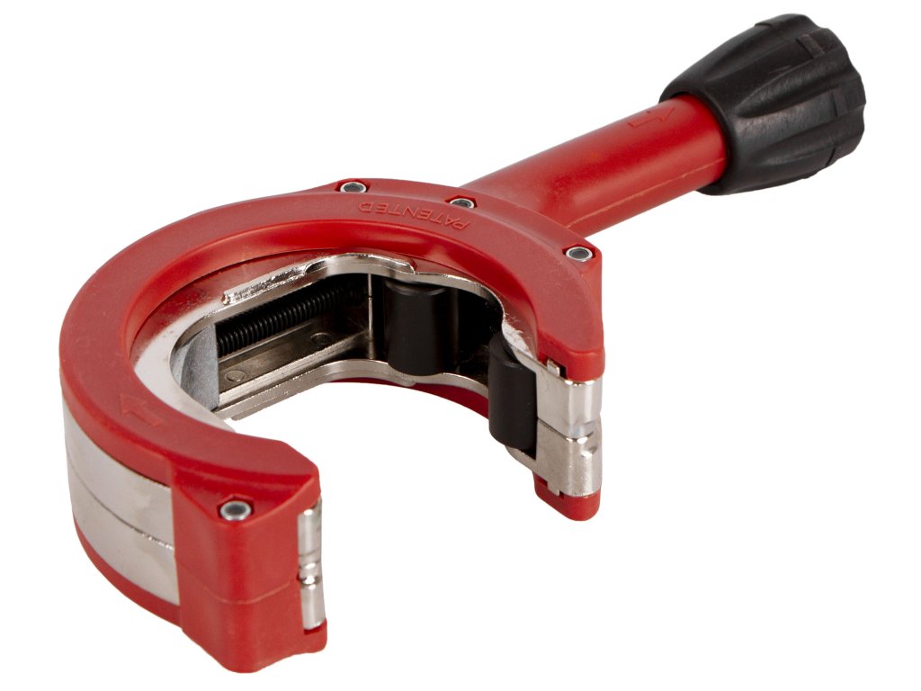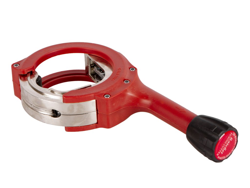 - Řezačká má vnitřní kotouč, který se pomocí ráčny otáčí kolem potrubí.