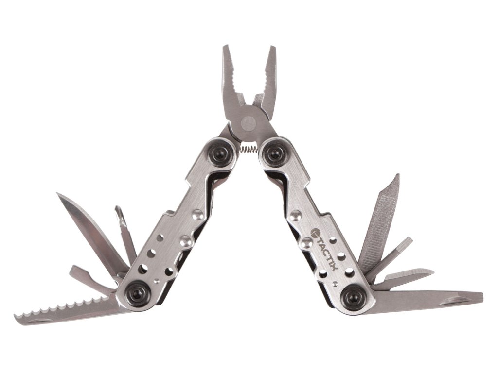 Multifunkční kleště jsou celokovové a vybavené řadou užitečných funkcí. Mimo samotných kleští nechybí pilka, nožík, otvírák, šroubováky a řada dalších věcí.