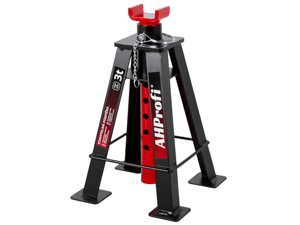 Zvedák má nízký profil pro snadný přístup pod vozidla, podpěry jsou výškově nastavitelné v rozsahu 440–720 mm.