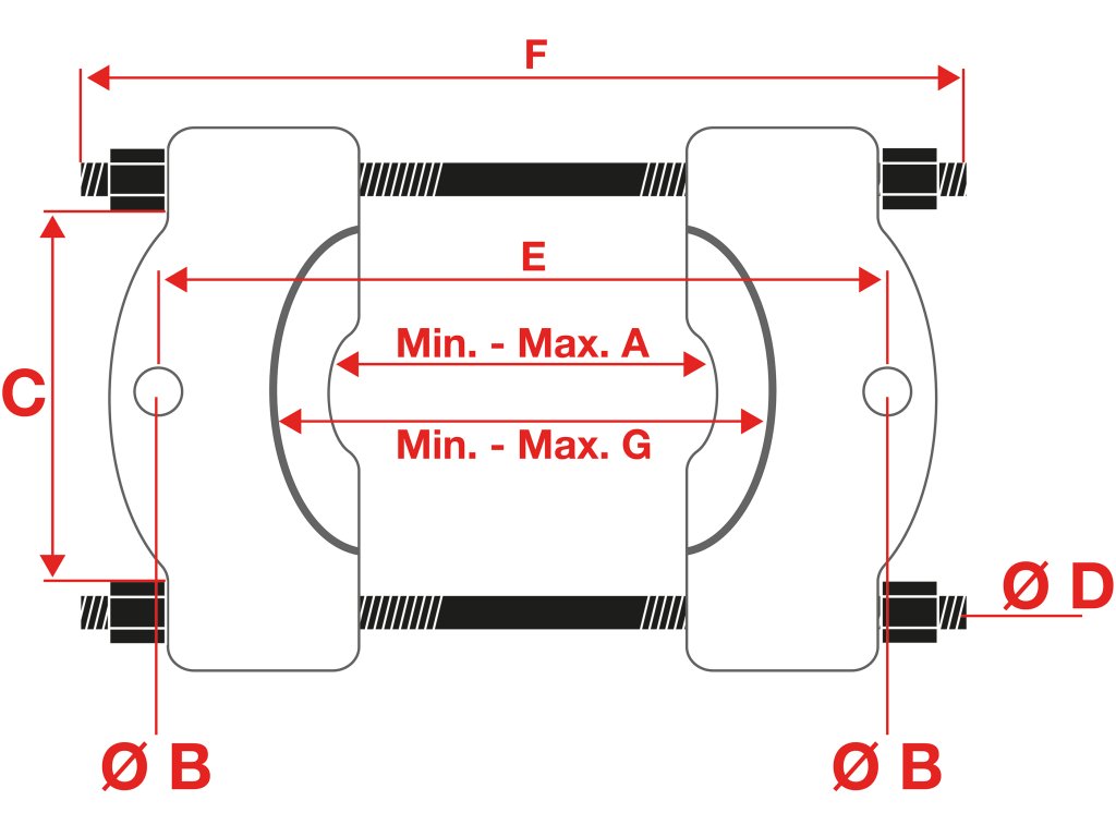 - Šířka upnutí (A) min. / max. v mm: min. 8 mm / max. 64 mm