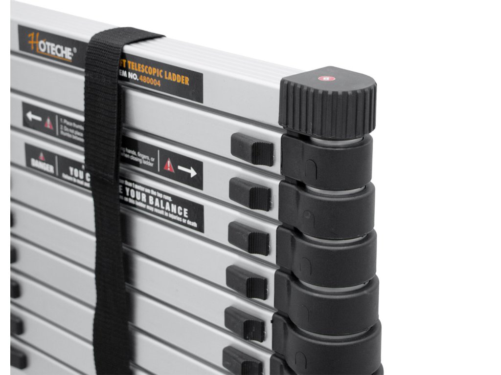 Hliníkový teleskopický žebřík o délce 3,2 m pro práce v interiéru i exteriéru a širokou škálu úkolů, jako je malování, čištění oken nebo montážní práce.
