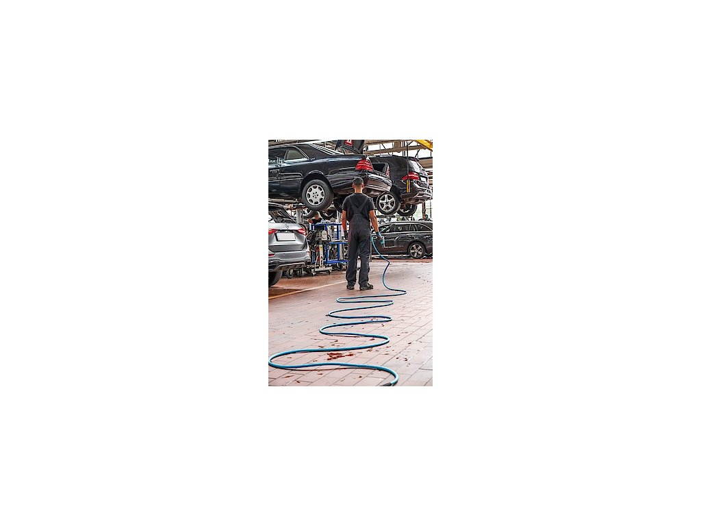 Vzduchová hadice je vyrobena z hybridního polymeru PVC-NBR, je tedy vysoce odolná a flexibilní. Oboustranná ochrana proti zalomení zajišťuje dlouhou životnost i v náročných podmínkách.
